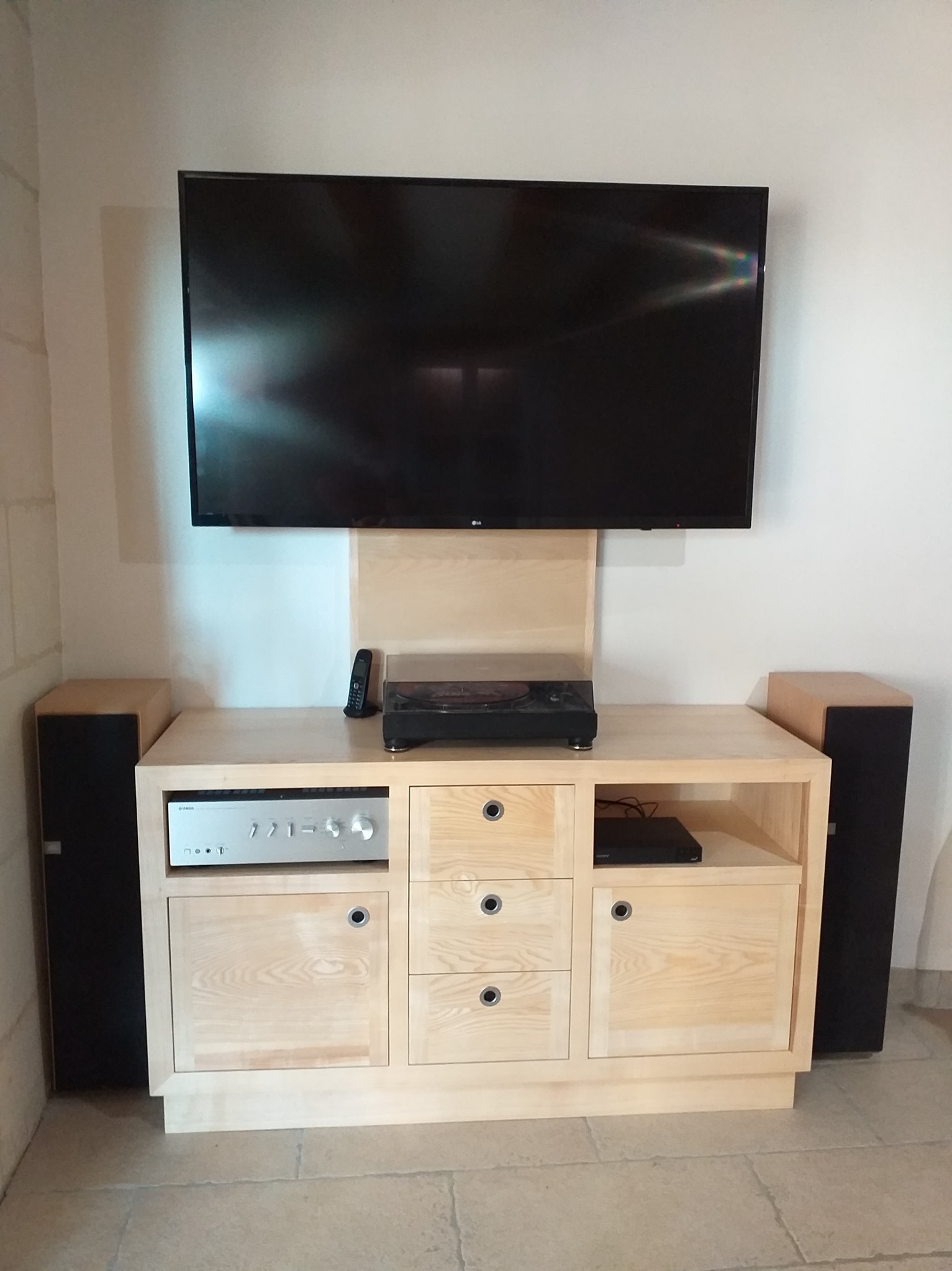 Fabrication d'un meuble TV/Hi-Fi en frêne massif.