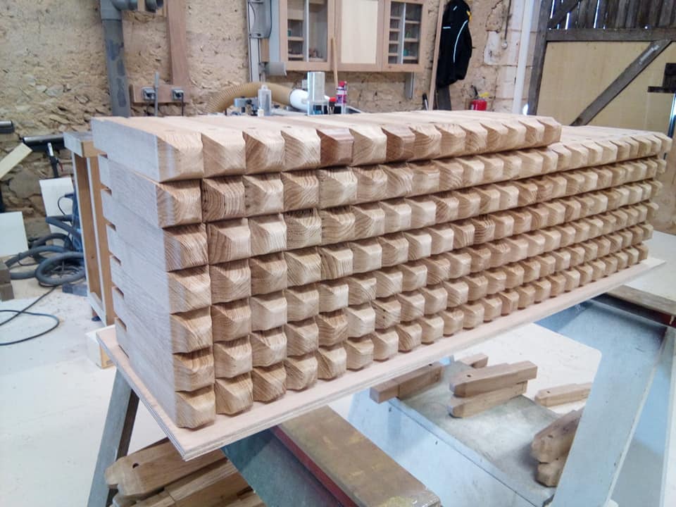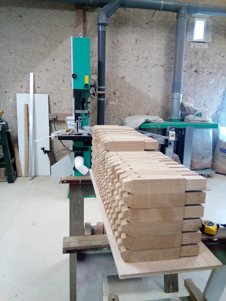Fabrication d'une série de poteaux à chapeau de gendarme pour le Clos Lucé.