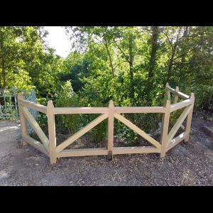 Fabrication et pose d'une barrière en chêne, écharpes en movingui.