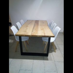 Fabrication d'un plateau de table de salle à manger en frêne avec bord en écorce.