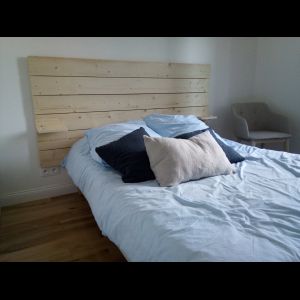 Réalisation et pose d'une tête de lit suspendue avec fixation invisible.